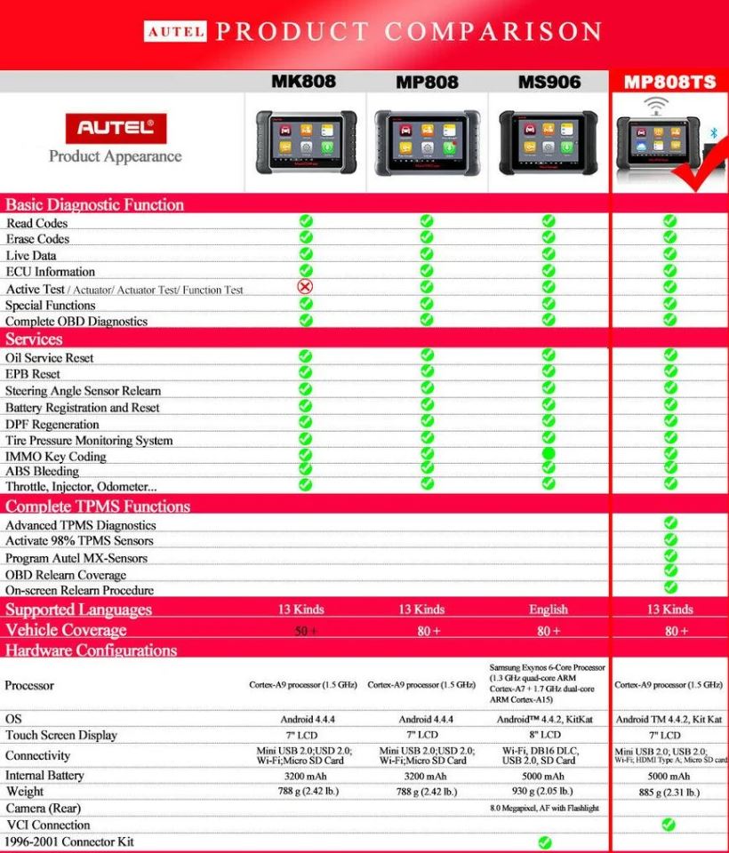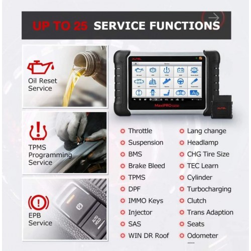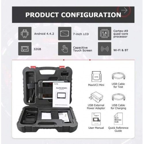 Autel MaxiPRO MP808TS este versiunea ultra portabila de diagnoza auto ce comunica cu interfata de diagnoza fara fir. Interfata este intuitiva si usor de folosit, tableta are un display de 7 inci cu o rezolutie de 1024*600 de pixeli. Citeste rapid codurile de eroare afisandu-le la fel ca aparatele de diagnoza din reprezentanta, ofera functii speciale pentru TPMS.